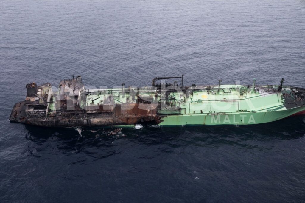 На фото видно великі руйнування, спричинені пожежею та вибухом, внаслідок яких більше половини судна обгоріло. З боків корабля, трохи вище за ватерлінію, утворилися дві величезні пробоїни. Італія, Франція та ще сім країн повідомили Єврокомісію про те, що російський газовоз несе загрозу екологічній безпеці. Про це йдеться у листі держав-членів ЄС, який наводить Reuters. “Ненадійний стан судна у поєднанні з характером його спеціалізованого вантажу створює безпосередню і серйозну загрозу великої екологічної катастрофи в самому серці морського простору Європейського союзу”, – наголосили країни ЄС.